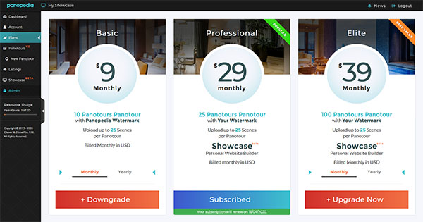 You may downgrade your existing subscription at anytime. To do so, log in and navigate to Plans, or https://mail.sandbox.panopedia.com/account/plans.