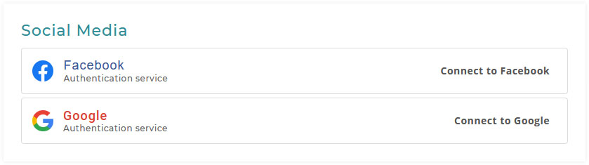 To get started, simply click on either the Facebook or Google blocks and you will be brought to the social media service for authentication. After you are done, you will be able to see your details. We do not collect any data from your social media accounts, only your email and your ID for authentication.