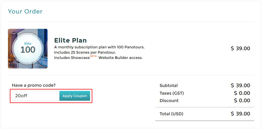 To apply a coupon to your checkout, simply enter the code we provided into the promo code field.