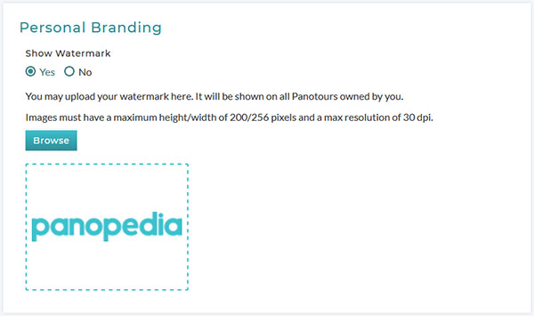 On every Panotour, by default there is a Sandbox watermark on the top left hand corner. For select subscription plans, you are able to replace the watermark with your own image (logo, profile picture, et cetera).